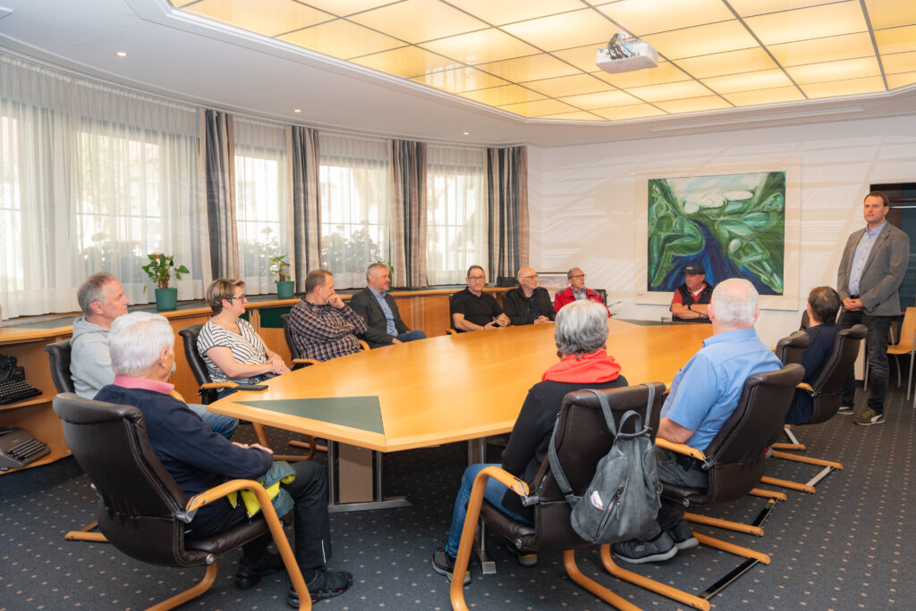 Bürgermeister Simon Grubauer begrüßte die Chronisten im Gemeindeamt Tux mit interessanten Ausführungen zu seiner Gemeinde. Danach gewährte Chronist „Joof“ Einblicke in seinen Chronikraum und seine Chronistentätigkeit. Solche Besichtigungen sind für Chronisten unbezahlbar und hilfreich für die tägliche Arbeit.