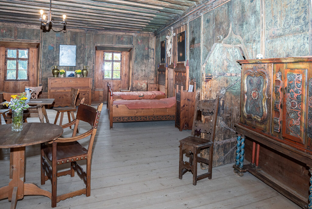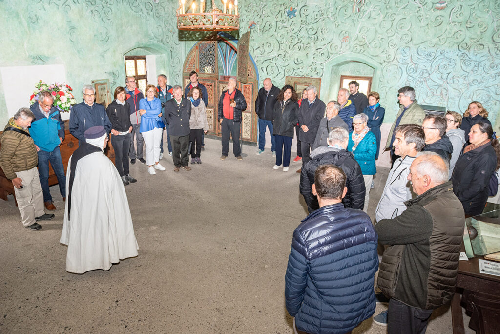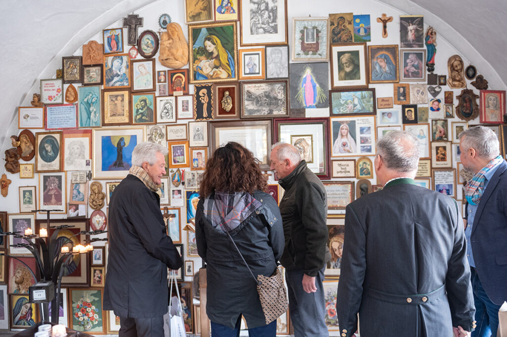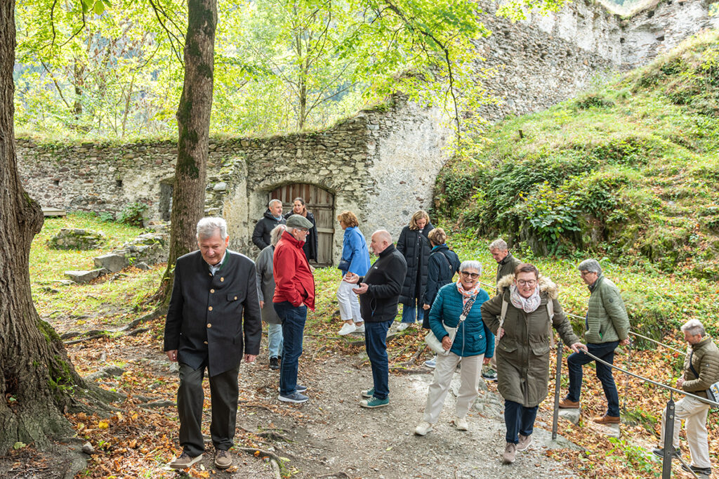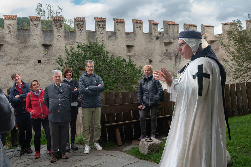Weitere kulturelle Höhepunkte waren ein Besuch in der Wallfahrtskirche von Trens und in der Burg Reifenstein, die zu den am besten erhaltenen und kunsthistorisch bedeutendsten Burgen Südtirols zählt. Dank des Kunstverständnisses der Deutschordensherren sind die aus dem 13. Jh. stammenden Strukturen sowie die Innenausstattung der Burg über die Jahrhunderte bewahrt worden. Und so führte denn auch Mario im Kostüm eines Deutschordensritters mit fundierten Erklärungen zu Geschichte der Burg und ihrer Besitzer durch die Räumlichkeiten.