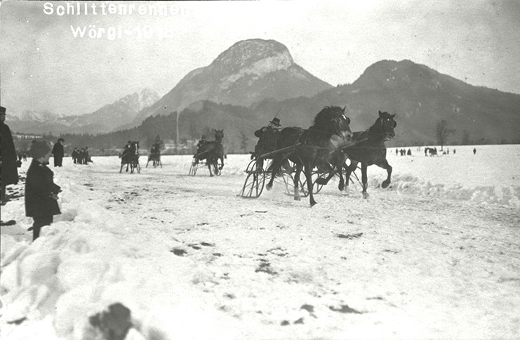 Foto: Pferdeschlittenrennen auf Schnee wurden in Wörgl ab 1901 vom Wörgler Trabrennverein veranstaltet.