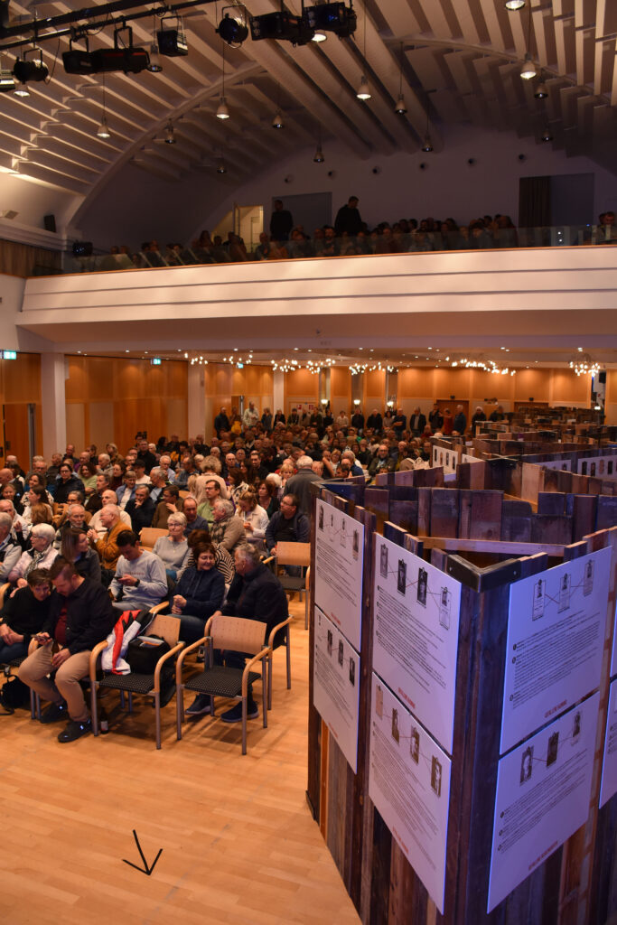 Biografien von Bombenopfern, Gefallenen, Vermissten, Verfolgten und Opfern der Krankenmorde waren ebenso Teil der Veranstaltung, wie Interviews mit Zeitzeugen, Fotos und Filme über den Kraftwerksbau, das Windkanalprojekt und Berichte über die Kriegsgefangenschaft. „Im Saal war es zwei Stunden lang mucksmäuschenstill, die Besucher waren zutiefst bewegt. Im Anschluss an den Vortrag und bei den zwei folgenden Ausstellungsabenden konnten viele Anfragen beantwortet werden“, berichtet Wegleiter.