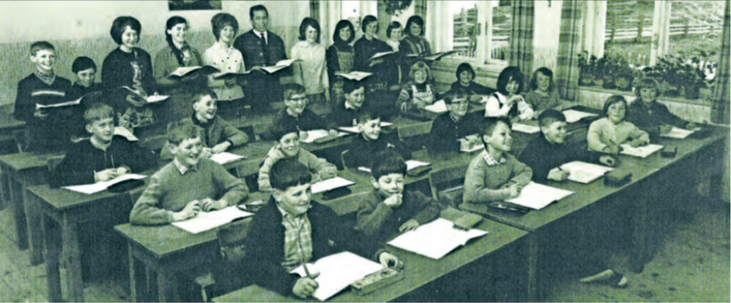Volksschule Wald im Pitztal, Schuljahr 1964/65. Am Foto ist die kombinierte Klasse der 4. bis 8. Schulstufe zu sehen: 1. Reihe (v. l.): Hans Knabl, Heinz Neurauter, Wilfried Giovanelli †, Josef Neururer, Reingard Raggl, Leni Gabl 2. Reihe: Josef Knabl, Josef Kapferer, Franz Raich, Martin Flir, Irene Neururer, Erika Gabl 3. Reihe: Josef Götsch †, Josef Gabl †, Hubert Gabl, Erich Flir, Antonia Schuler, BrigitteNeururer.4. Reihe: Siegfried Gabl, Hermann Kapferer †, Renate Flir, Maria Wohlfarter, Margarethe Raggl, Lehrer Herbert Abfalterer, Margreth Gabl, Edith Neururer, Roswitha Flir, Agnes Köll, Anni Krabichler