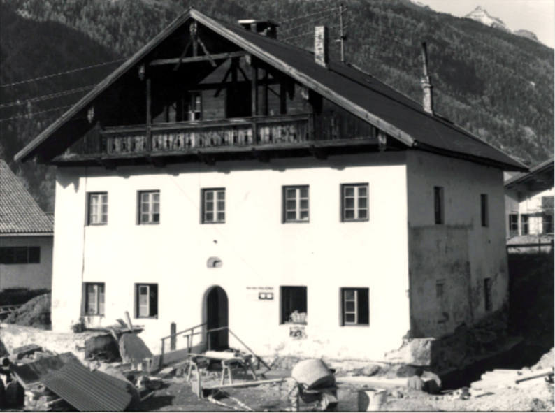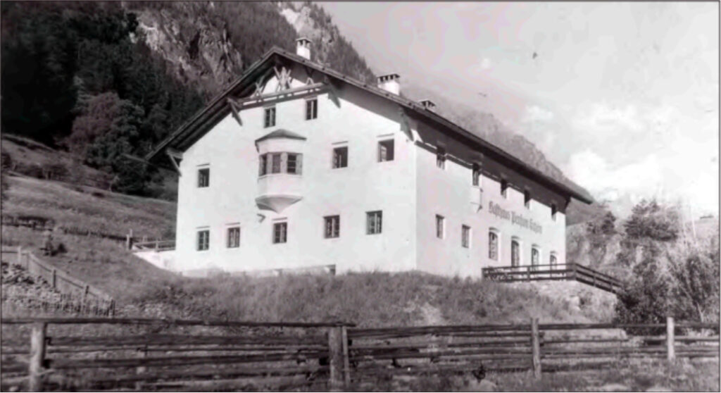Das in Oberlängenfeld gelegene Mittelflurhaus mit seinem charakteristischen, gewölbten Hauseingang wurde ursprünglich als Frühmesser-Widum errichtet. Es zählt zu den bedeutenden historischen Gebäuden des Ortes und spiegelt die traditionelle Bauweise jener Zeit wider. Von 1902 bis 1967 diente das Haus als Wohn- und Ordinationshaus der Längenfelder Ärzte – beginnend mit dem Kurarzt Dr. Knoll bis Dr. Holewka im Jahr 1967. Über mehrere Jahrzehnte hinweg war das Widum somit nicht nur ein Ort des Wohnens, sondern auch der Heilkunst und des Vertrauens für die Bevölkerung von Längenfeld. Wie das Bild zeigt, wurde in den 1980er- Jahren das Haus von Hermann und Ingeborg mit viel Liebe zum Detail restauriert und dient seither als ihr Wohnhaus. Damit bleibt das historische Gebäude nicht nur erhalten, sondern wird weiterhin aktiv genutzt – als lebendiger Teil der Geschichte und Gegenwart von Oberlängenfeld.