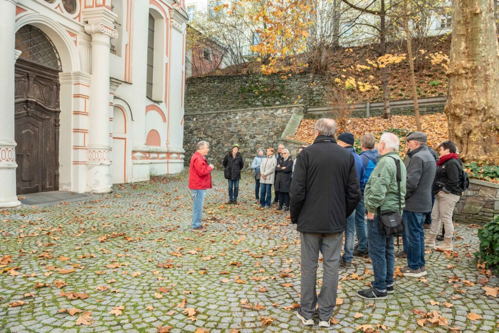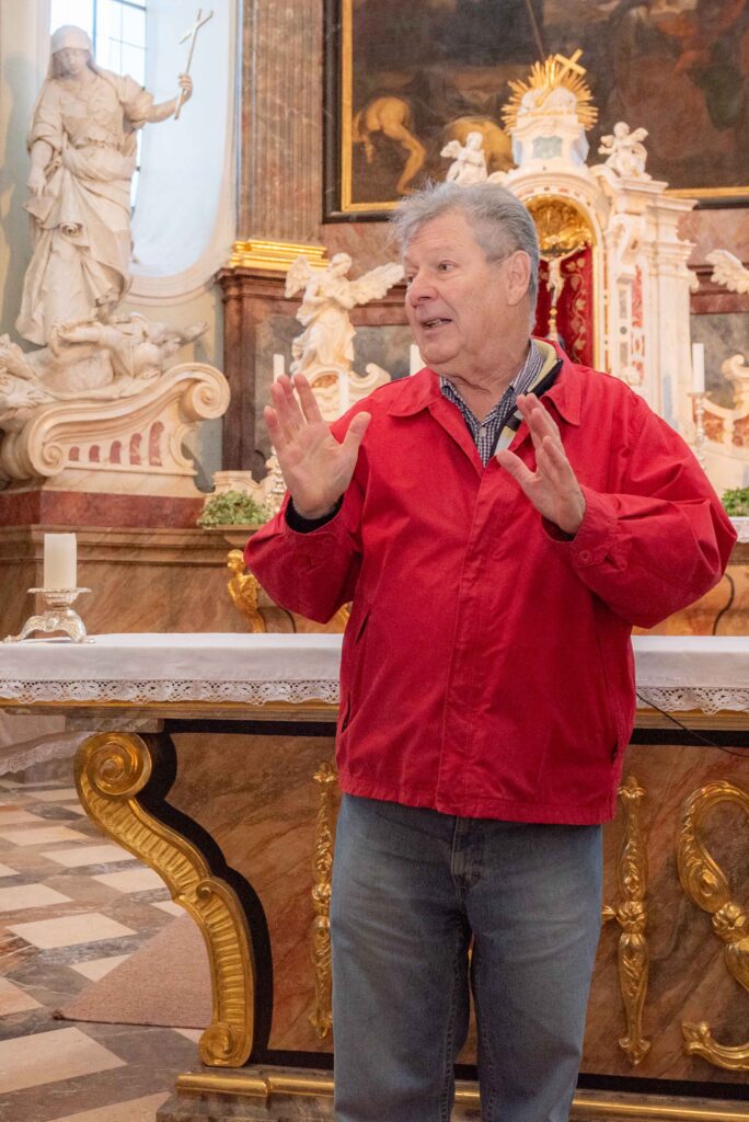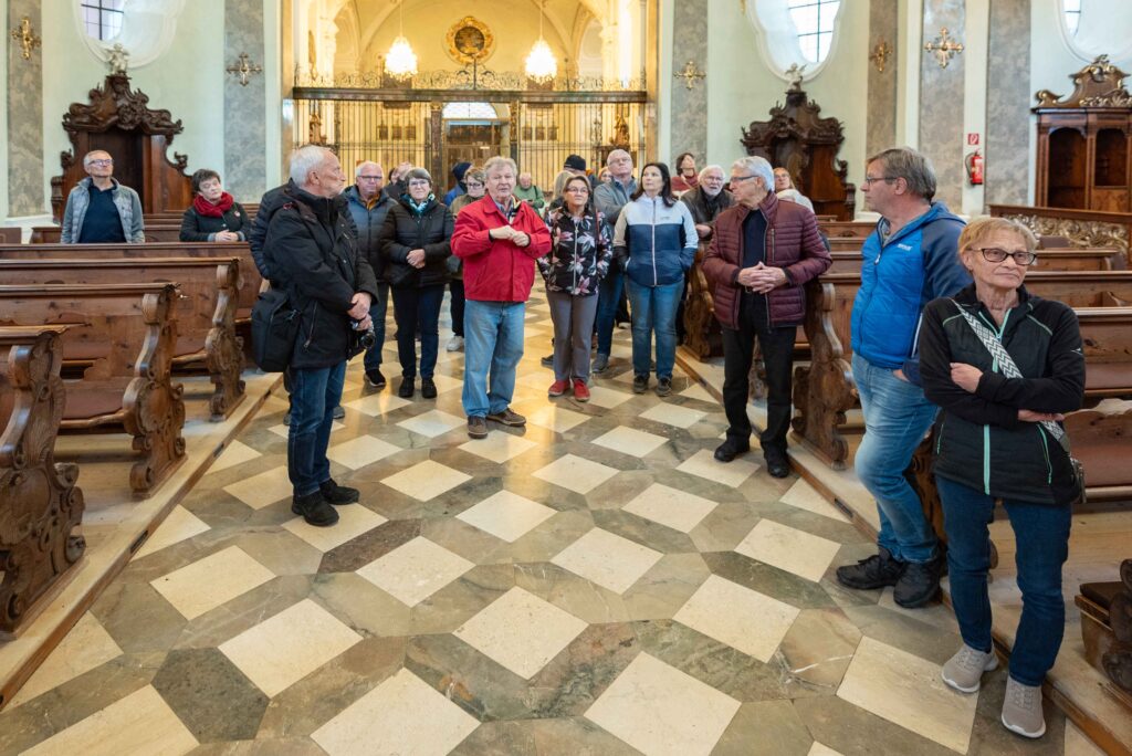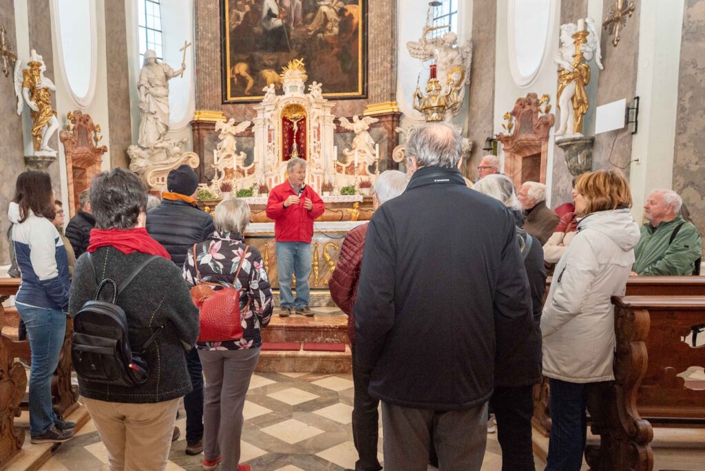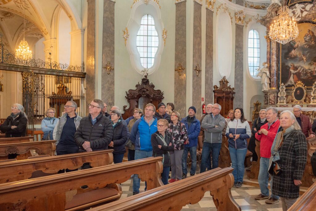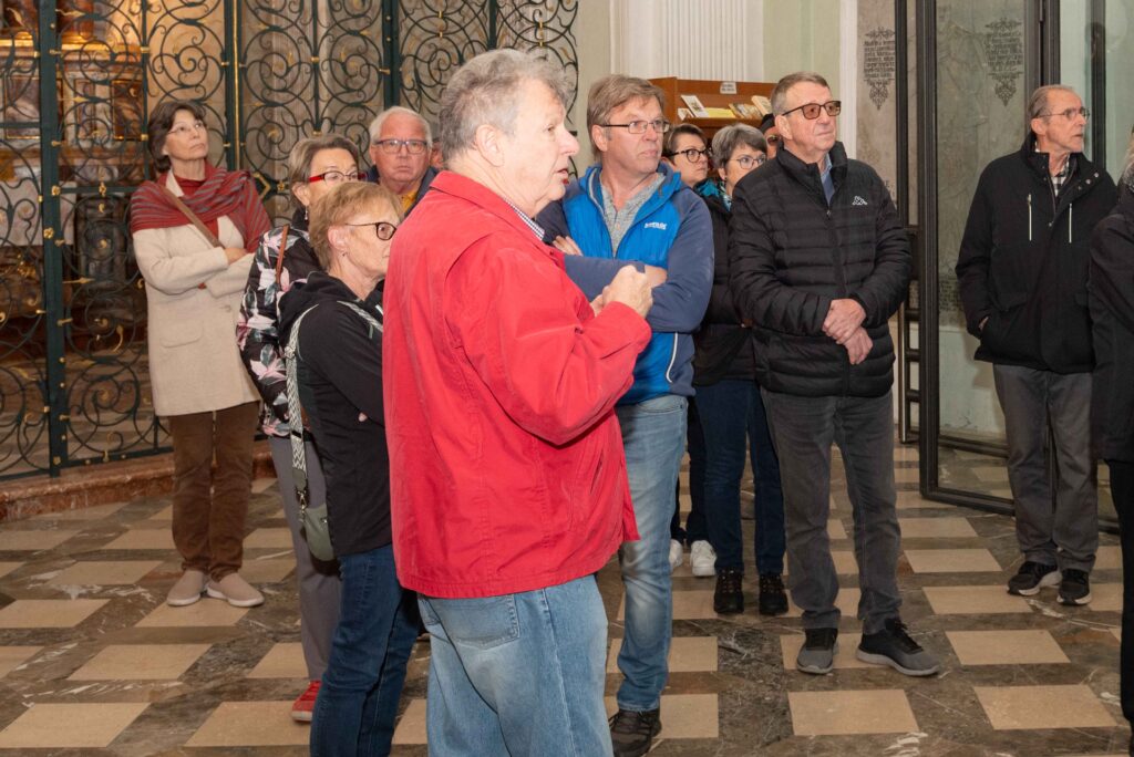 Am Samstag den 08. November 2025 führte Ortschronist Karl Wurzer aus Volders eine Gruppe von 30 Personen durch die Karlskirche. Karl erzählte vieles über die Geschichte der Karlskirche und deren vielen Malereien. Auch durften wir bis zur Orgel mit dem Verbindungsgang zum Kloster. Als Höhepunkt durften wir sogar die große Sakristei bestaunen. Nach der gut 60 Minütigen Führung ließen wir im Reschenhof den Nachmittag ausklingen. Später erfuhr ich dann von einer Besucherin, dass der Maler Martin Knoller 1725 in Steinach am Brenner geboren wurde und somit 2025 das 300. Geburtsjahr. 1766 schuf Martin Knoller das Deckengemälde in der Karlskirche.